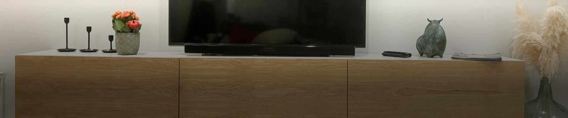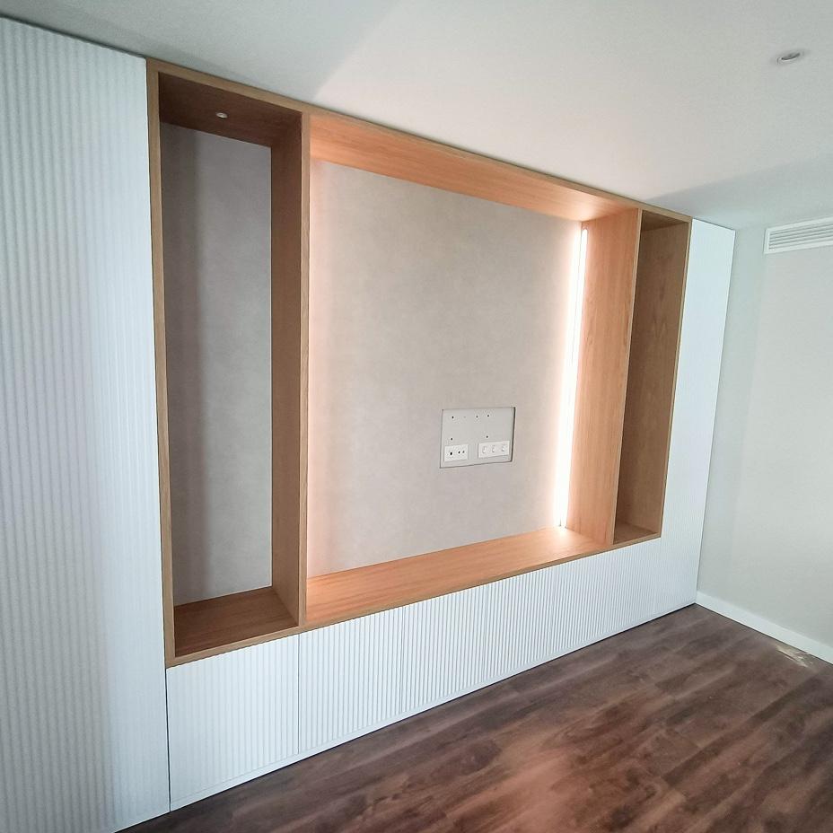 Muebles personalizados para integrar tu TV y almacenamiento con estilo.